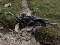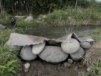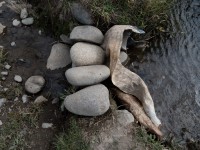 Central a Riego es un conjunto de fotografías que destacan “tacos” y “rastras” como tecnología central que sustenta este proceso de riego. Construidas a partir de objetos encontrados, estas formas improvisadas son ejemplos de lo que Benítez llama “ingeniería vernácula” para alterar el curso y compartir el flujo de un canal entre varios regantes.